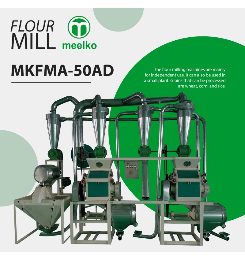 Las máquinas de molienda de harina son principalmente para uso independiente, también se pueden utilizar en una planta pequeña. Los granos que se pueden procesar son el trigo, el maíz y el arroz.